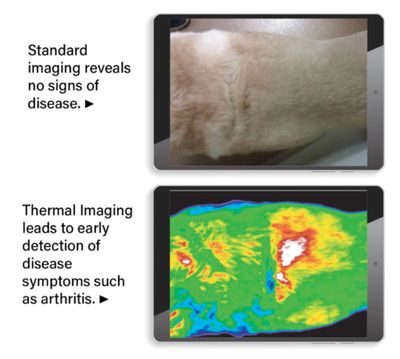 Thermal imaging measures radiated energy from your animal's skin. Differences in radiated energy can indicate problems in your animal's body.